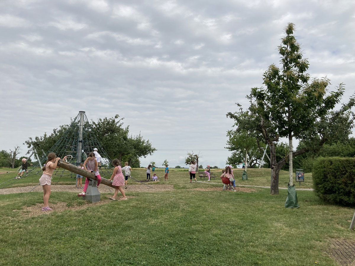 Als gemeinsamen Abschluss unternahmen die Klassen 2a und 2b am Dienstag, den 04. Juli einen Ausflug zum Spielplatz in Degerschlacht. Bei angenehmen Temperaturen wanderten wir zum Spielplatz und verbrachten dort den Vormittag. Die zahlreichen Spielgeräte, die große Wiese und einige Büsche und Bäume boten dabei viel Abwechslung. So wurde Fußball, Verstecken und Wikingerschach gespielt, geschaukelt, geklettert und gesprungen sowie gewippt, balanciert und Seilbahn gefahren. Als Überraschung gab es vor dem Heimweg noch ein leckeres Eis.