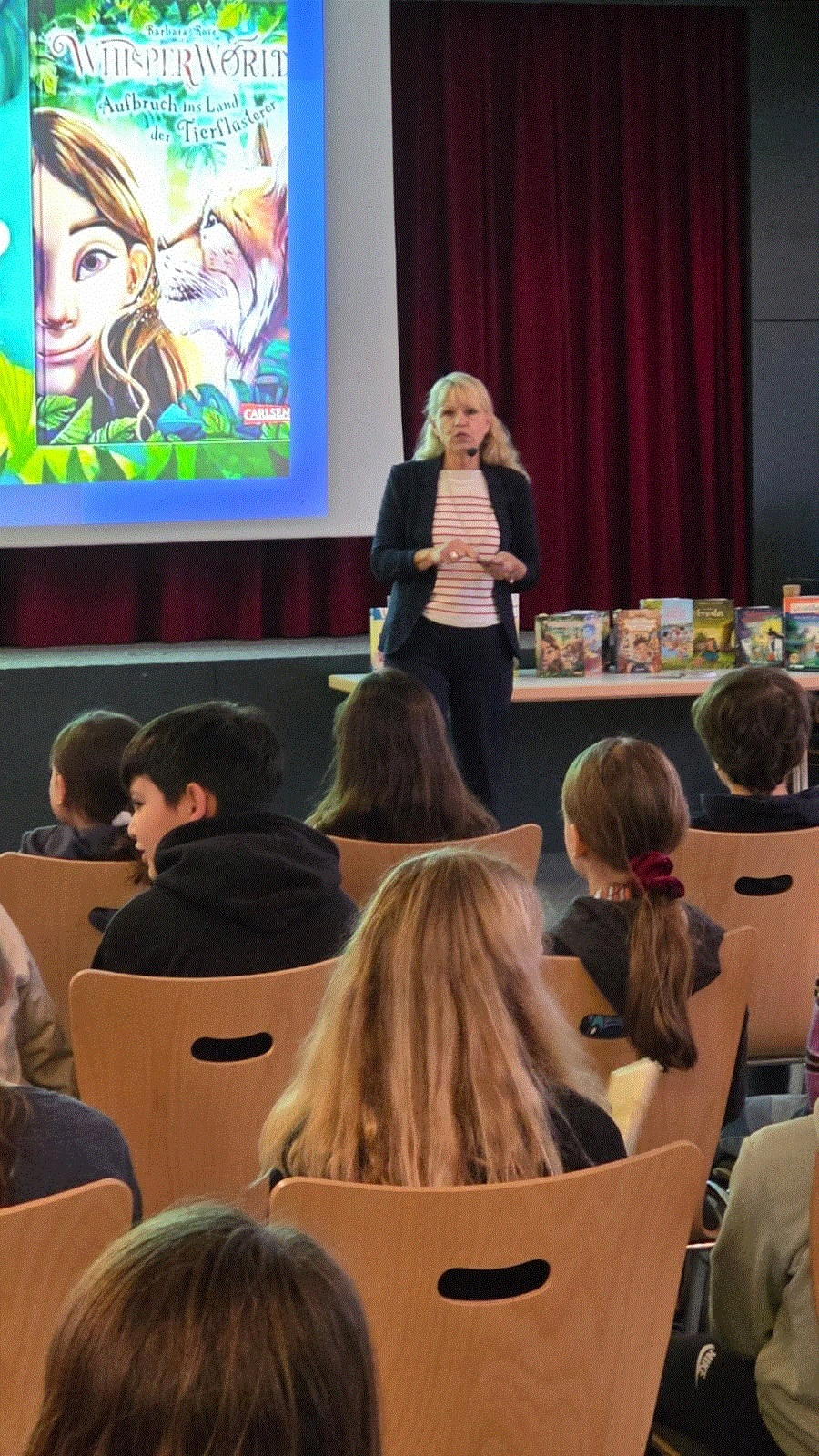 Die Klassen 4a und 4b durften einen ganz besonderen Vormittag erleben. Die Autorin Barbara Rose war zu Gast und nahm uns mit in die spannende Welt von ihrer Buchreihe „Whisperworld“. Mit vielen Bildern und interessanten Erzählungen zeigte sie, wie viel sie für ihr Buch über ausgestorbene und geschützte Tiere recherchiert hat. Auch wir Kinder konnten unser Wissen einbringen und hatten großen Spaß daran, ihre Fragen zu beantworten. Besonders aufregend waren die spannenden Leseausschnitte, die Lust auf mehr gemacht haben – ohne zu viel vom Buch zu verraten! Am Ende bekamen alle Kinder sogar ein persönliches Autogramm. Ein rundum gelungener Vormittag, der uns neugierig auf die Welt von „Whisperworld“ gemacht hat!